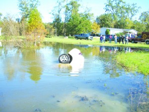 Gomez described what happened this way: “I thought it might be a teenage driver who was acting up. Then I realized the car hadn’t turned into a road or a driveway but into a yard. I could see that it had landed in a pond and was sinking with its lights still on. I pulled as close as I could and parked with my lights shining on the car.”