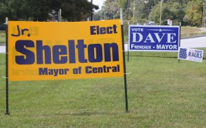 Mayoral candidates Jr. Shelton and Dave Freneaux have already put up campaign signs along Central’s major thoroughfares, and they are busy campaigning and raising money.