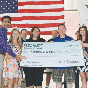 CENTRAL — Gov. Bobby Jindal attended Cooking in Central Saturday and praised the Central community for its efforts to aid victims of the tornado in Moore, Oklahoma. Jindal said Central is an example of America at its best. An emotional Moore elementary school principal Kathy Knowles said Central’s gesture was part of the healing process.