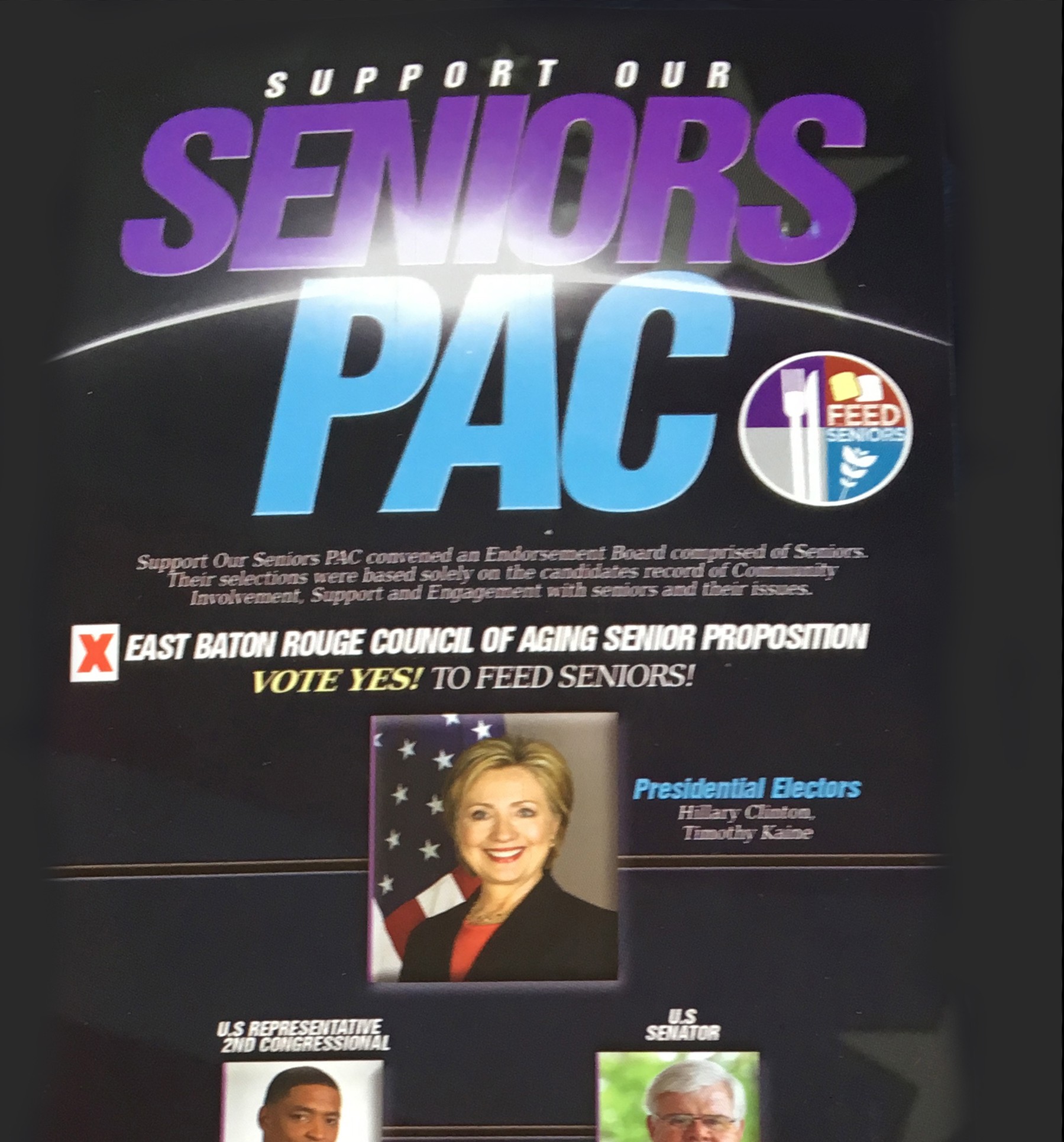 Last week, the Council on Aging sent out from its office at 5790 Florida Boulevard a 37,000-piece to voters across the parish endorsing Hillary Clinton for President, Foster Campbell for U.S. Senate, Cedric Richmond for Congress, Sharon Weston-Broome and Denise Marcelle for Mayor-President, and five individuals for Metro Council. All except one candidate for Metro Council are Democrats.