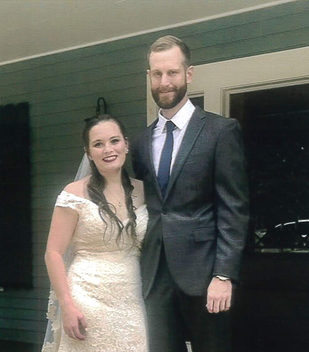 Surely the Presence of the Lord was felt at the lovely outdoor wedding of Kevin Michael Smith of Mendenhall, MS and Jessica Suzanne McCallum of Central, LA, on July 10, 2021. The 6 p.m. ceremony was held on the front porch at the home of Brenda and Bruce Smith, parents of the groom, in Brookhaven, MS.