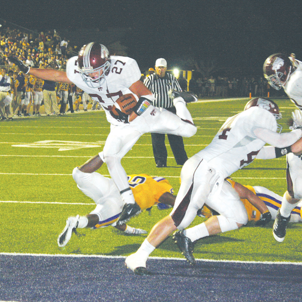 “Courville is so tough, he could just as easily start at linebacker,” Coach Dotson said. Dotson liked the QB’s 96-yard drive. “It took us out of the hole.” The QB passed to Devon Gales for a 23-yard TD. Gales had a 48-yard kickoff return.